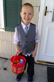 | He was shoveling little chocolates in his mouth as soon as he opened eggs...until we caught onto him. |